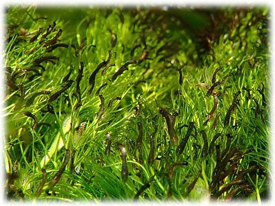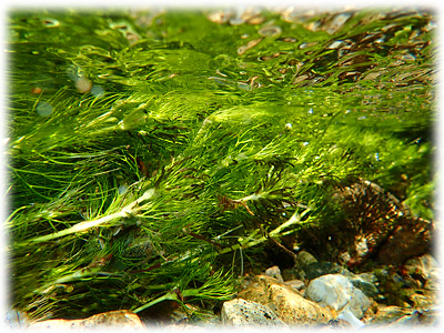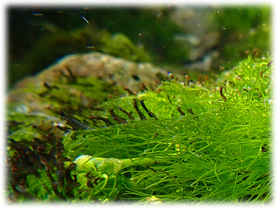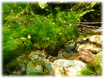 でも、石の表面より バイカモの葉先の
