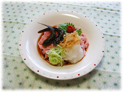 付け合わせは、梅干し・大葉・ねぎ・